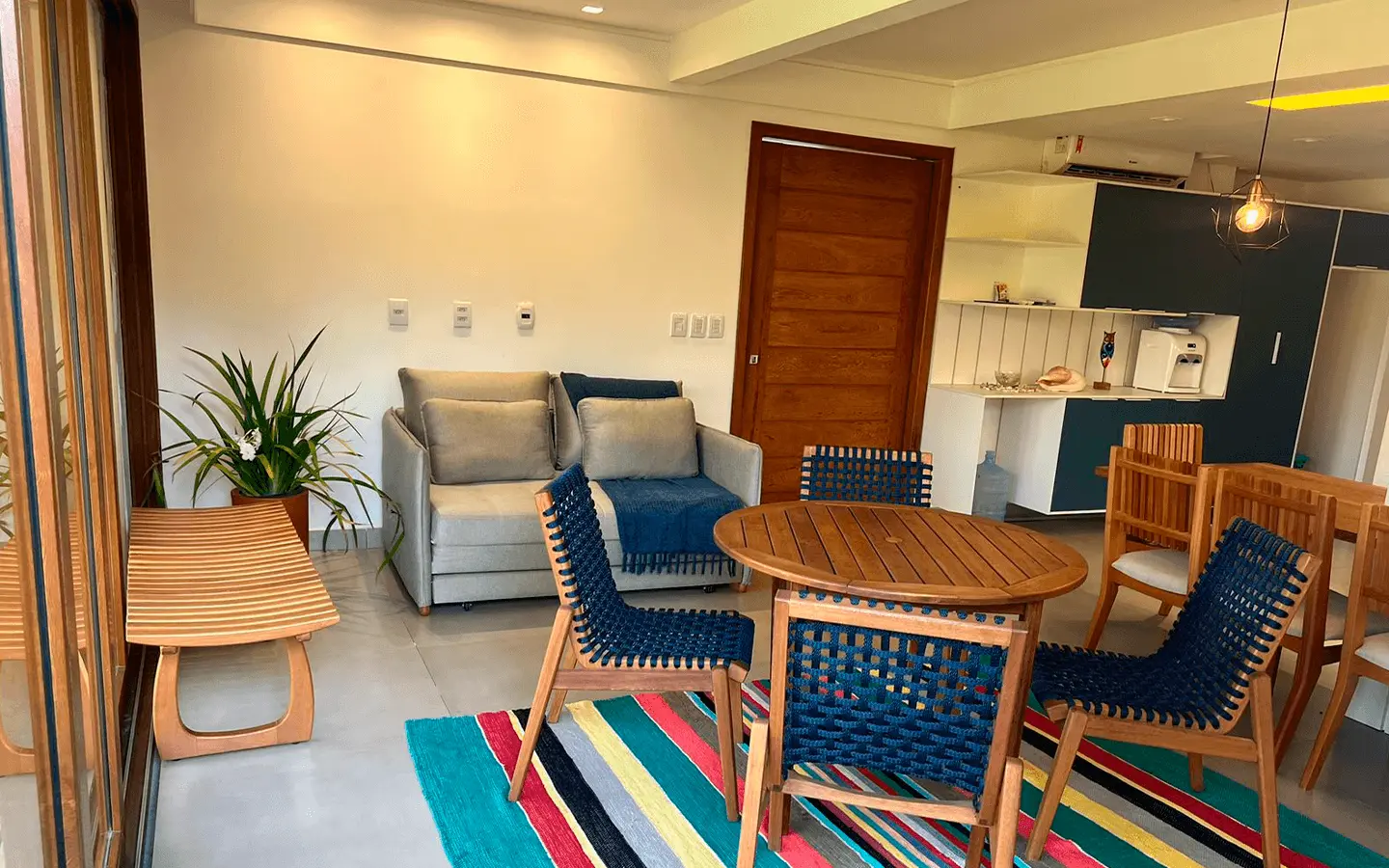 Sala com ar condicionado e sofá cama de casal