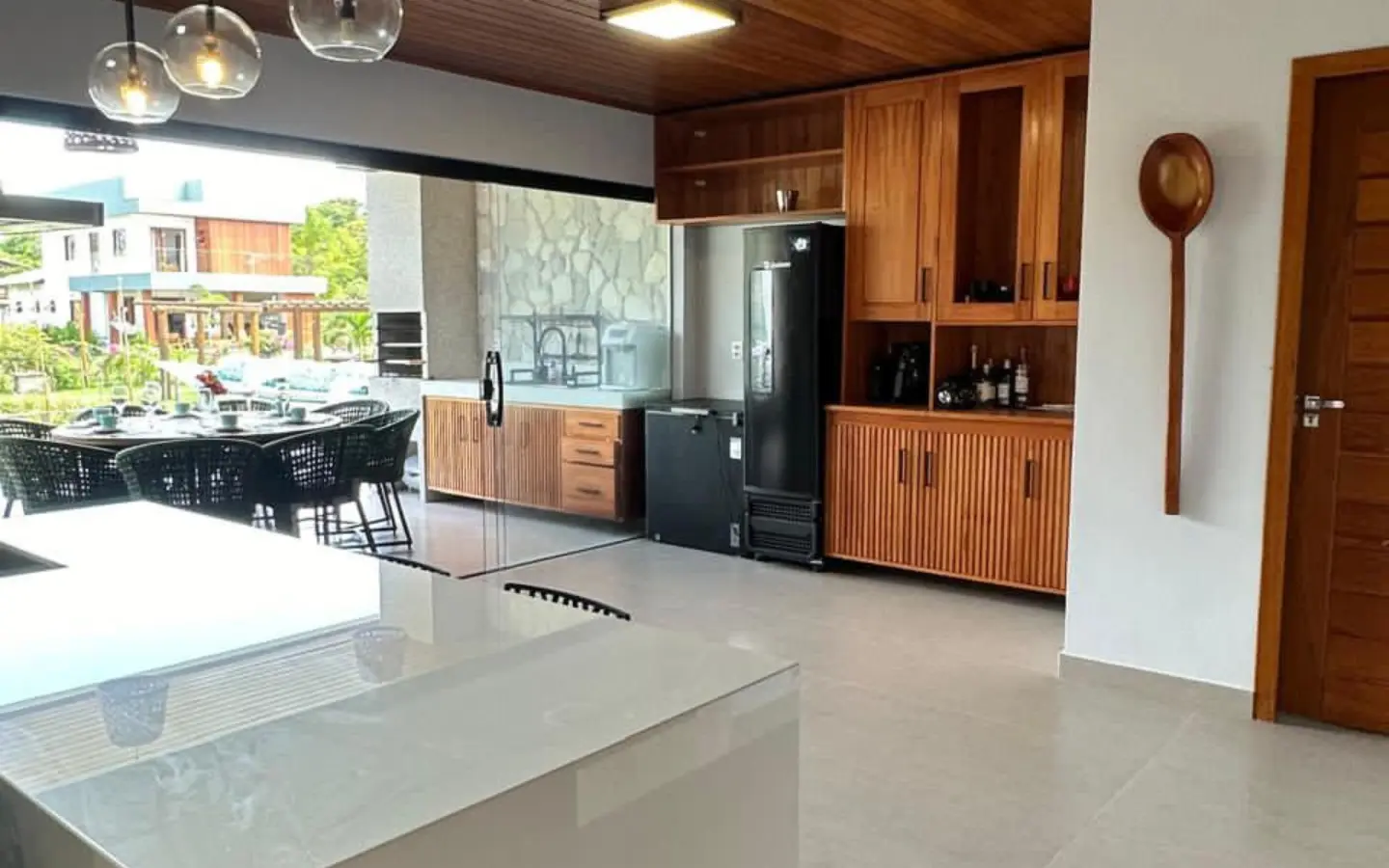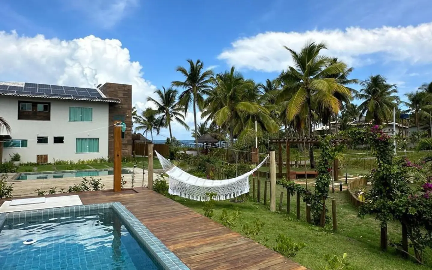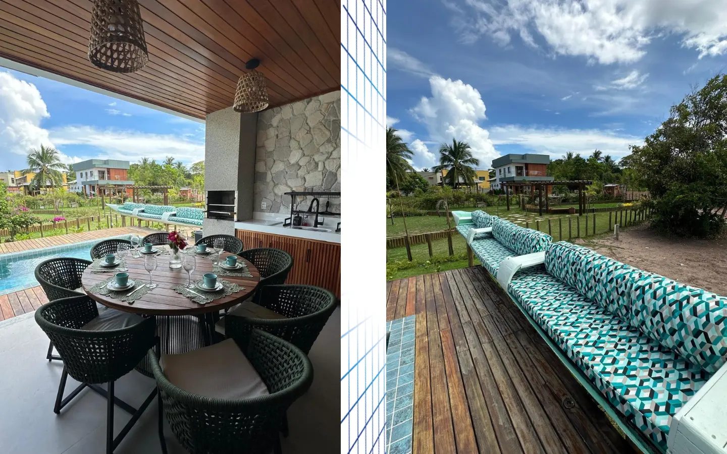 Piscina e área gourmet com churrasqueira.